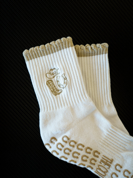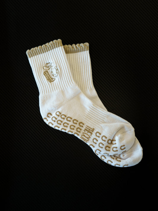 Step confidently in every class with The Core Club grippy socks — your go-to for Pilates, barre, or any movement on the go. Crafted from soft, breathable cotton, these socks combine comfort, style, and stability for every step. From barre to pilates to running between errands, the TCC Grippy Sock Collection keeps you grounded, supported, and effortlessly stylish.