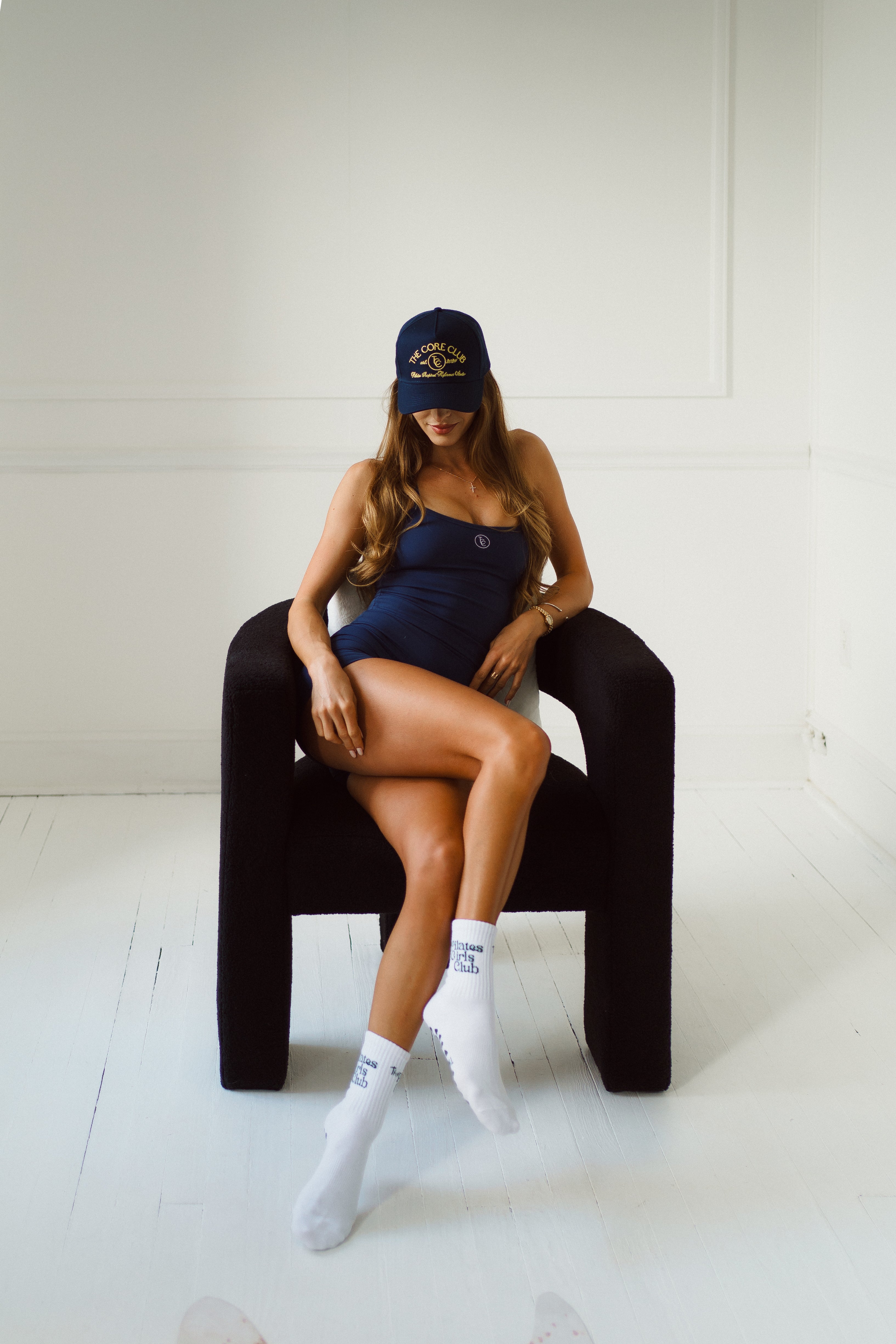 Perfect for the coastal gal, the Core Club Coastal Navy Blue Baseball Hat blends Pilates spirit with laid-back seaside style. Featuring navy blue cotton, “the core club” embroidered in vibrant yellow with the TCC round logo, plus the tagline “Pilates Inspired Reformer Studio”, this hat is a versatile studio-to-shore essential.