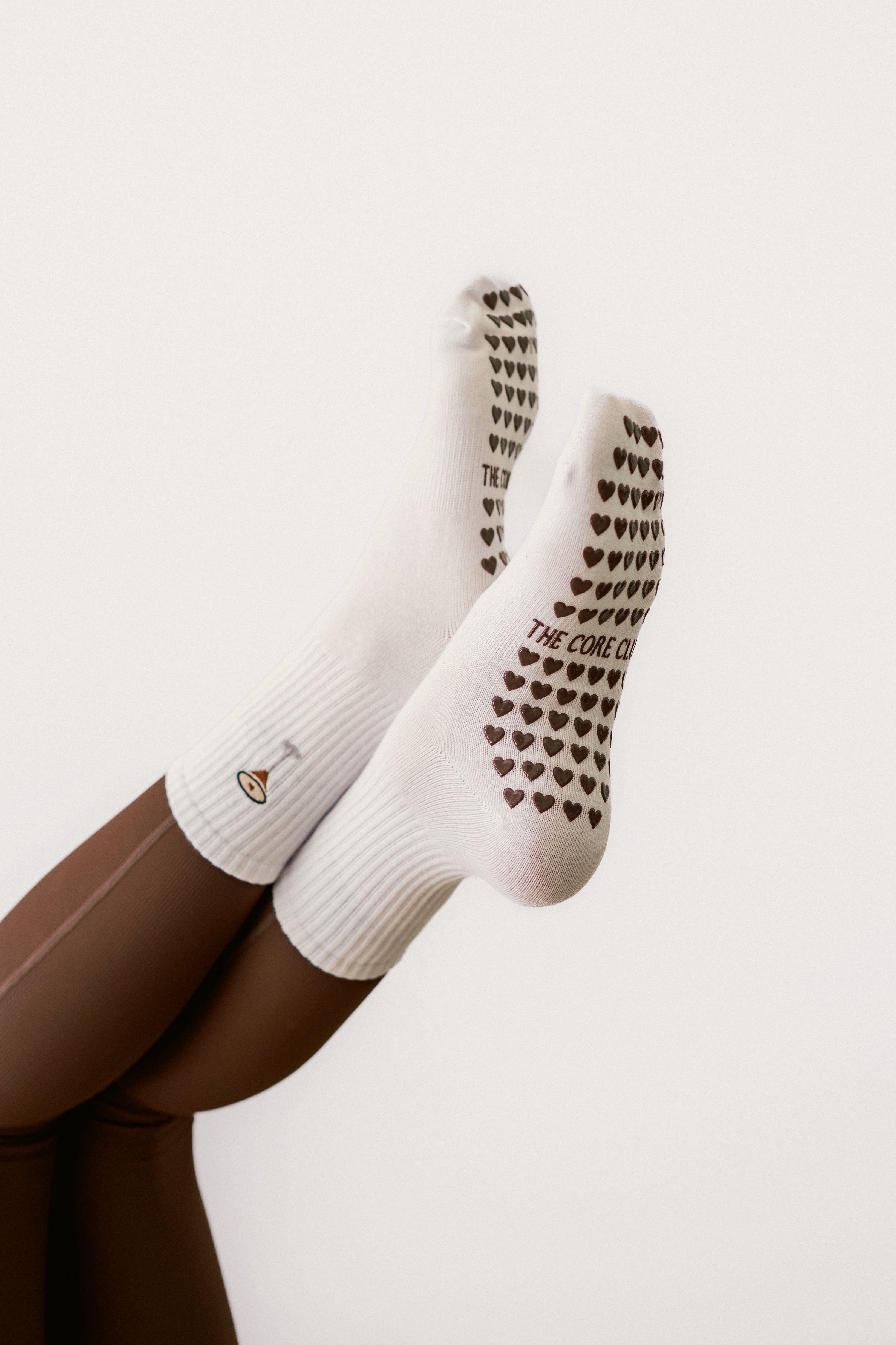 Bring cocktail-inspired style to your workout with the Espresso Martini Grip Pilates Sock. Designed for Pilates, yoga, barre, and beyond, these grip socks balance playful design with functional stability.