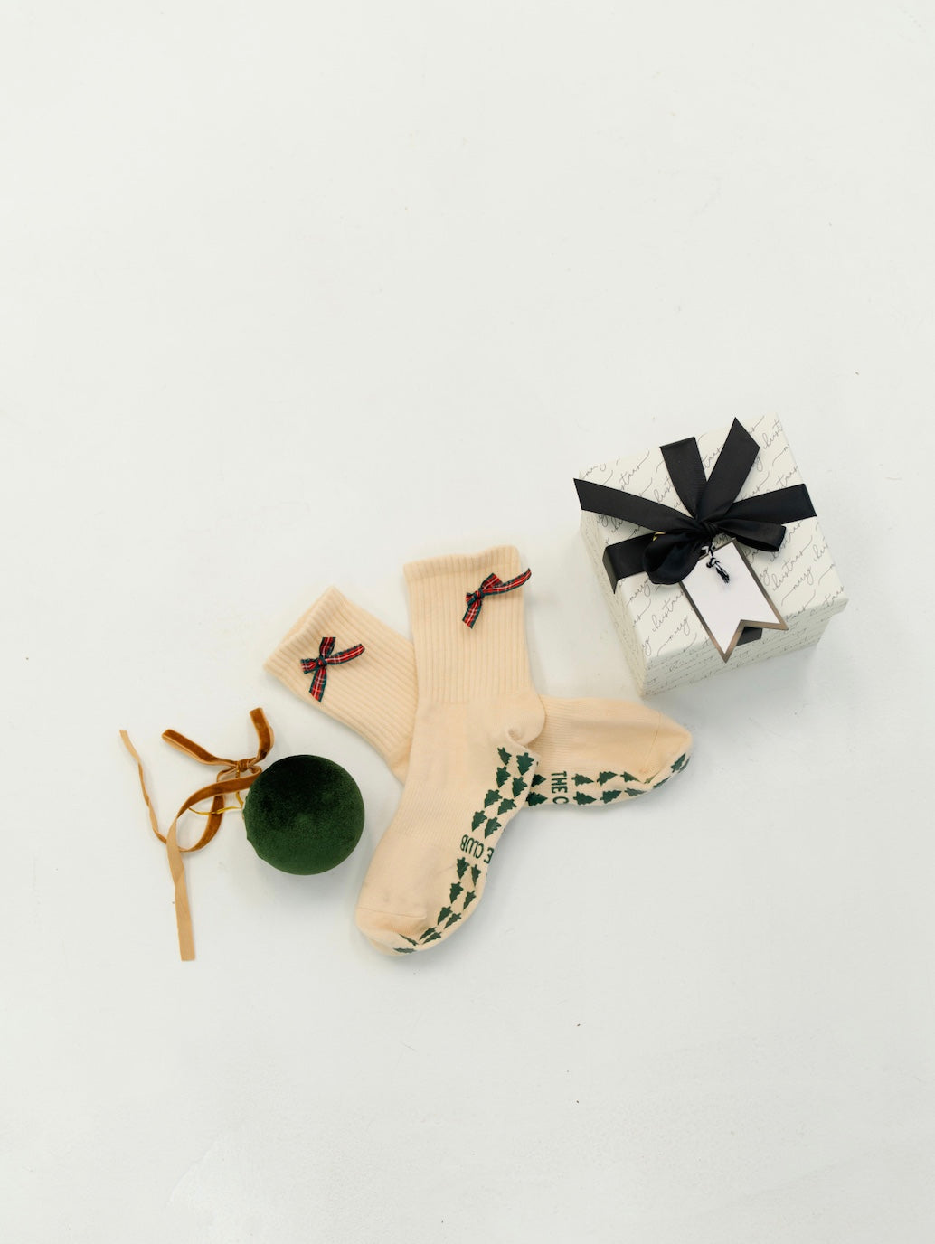 TCC Gingham Christmas Bow Grippy Socks | Pilates & Barre Essentials