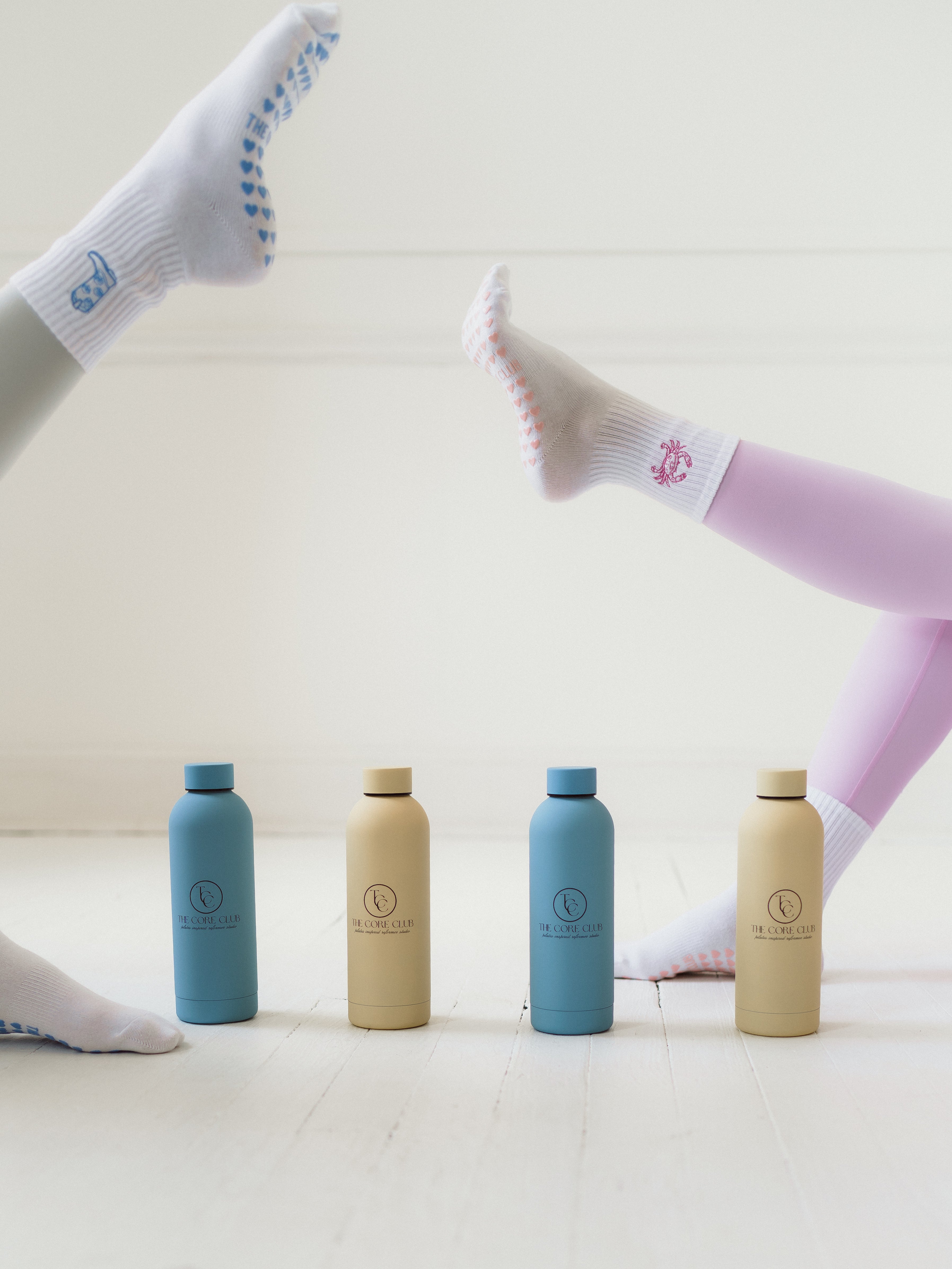 Stay hydrated in style with TCC Water Bottles, the perfect accessory for Pilates, barre, yoga, or daily adventures. Made from durable metal with a soft matte exterior, these bottles are as chic as they are practical. Available in soft blue and butter yellow, they perfectly complement your favorite sets and grippy socks.